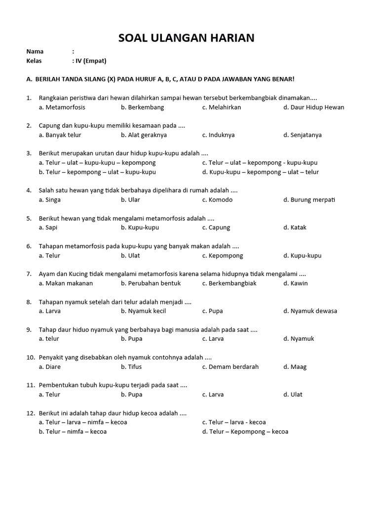 Soal IPA mencakup materi dari berbagai cabang ilmu, seperti: