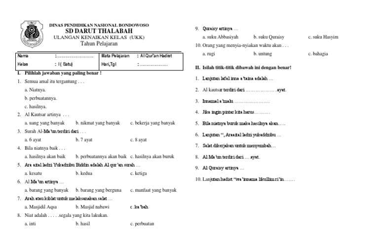 Contoh Soal Keagamaan Kelas 1 Semester 2